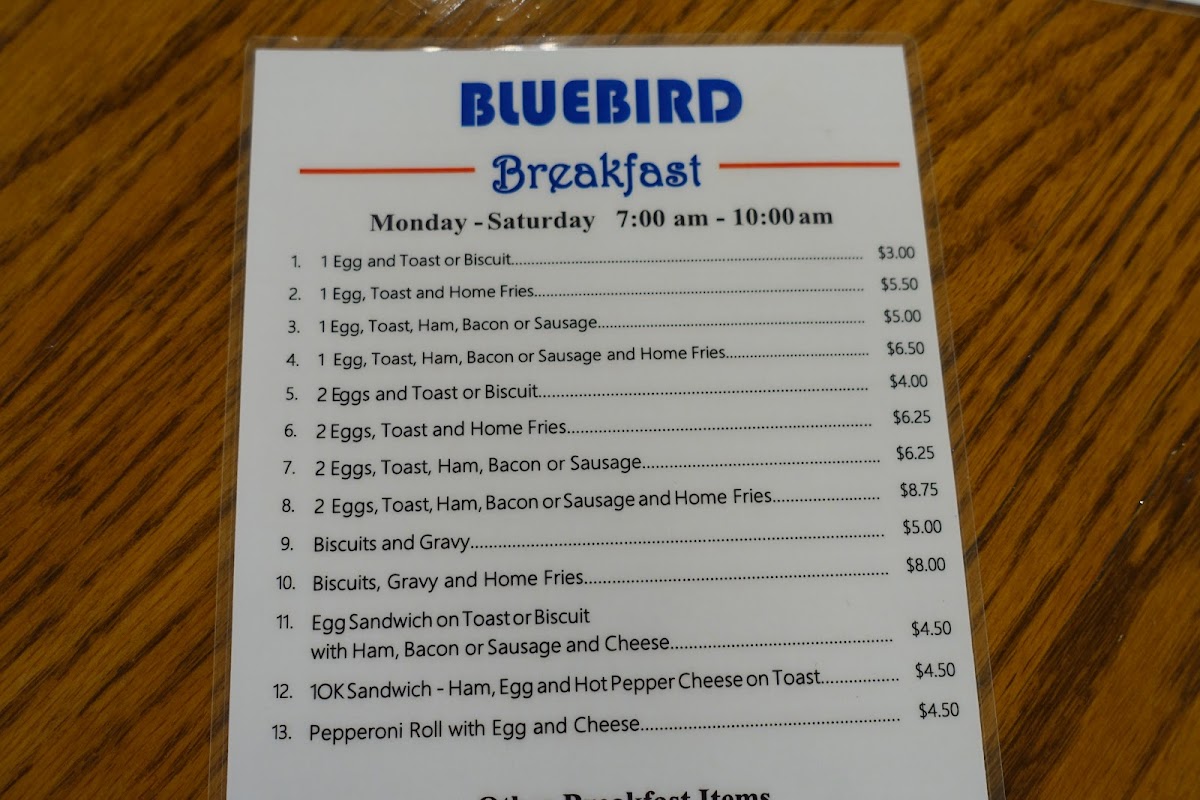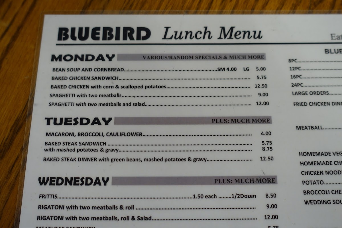 The Bluebird Menu