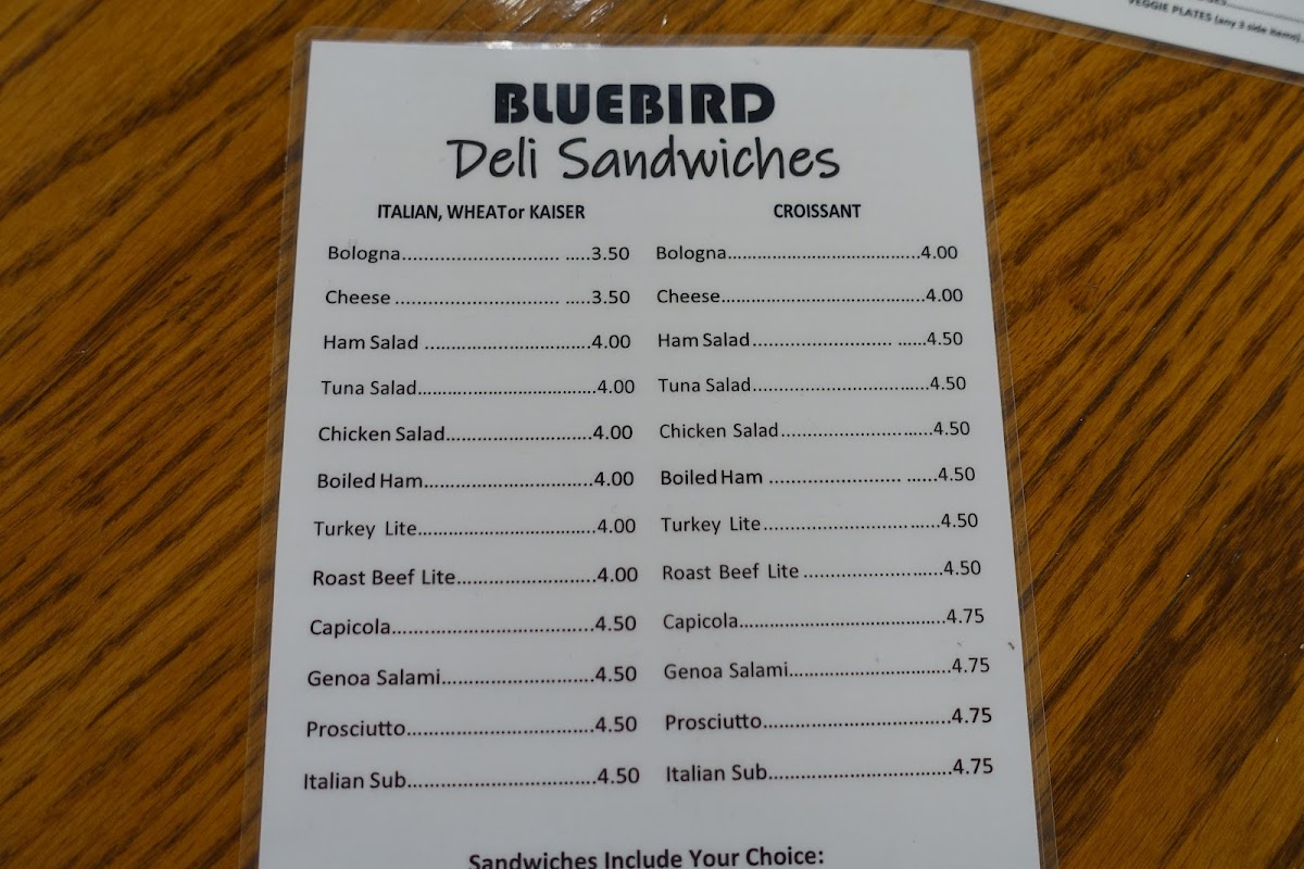 The Bluebird offers a straightforward, home-style menu that blends hearty deli classics with simple grocery staples. Whether you're stopping by for a casual lunch or picking up comforting provisions, the menu reflects a relaxed, neighborhood vibe where familiar dishes feel like a warm pause in the day.